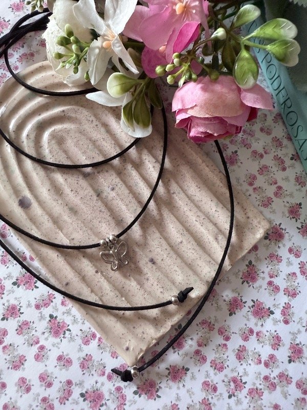 Choker gamuzado de 1,50mtrs con dije y bolitas de fundición