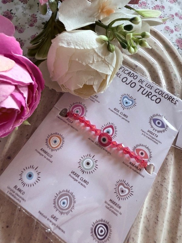 Pulsera de hilo chino rojo con cristales rojo y ojo turco de vidrio