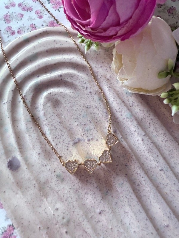 Collar con corazones imantados y permite transformar el dije en un trébol de 4 hojas, así que, podes cambiar el diseño según el look.